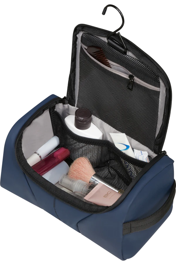 Nécessaire Glam-Go da Samsonite. Leve e funcional com opções de organização variadas e gancho para pendurar. Com pega lateral e bolso exterior.