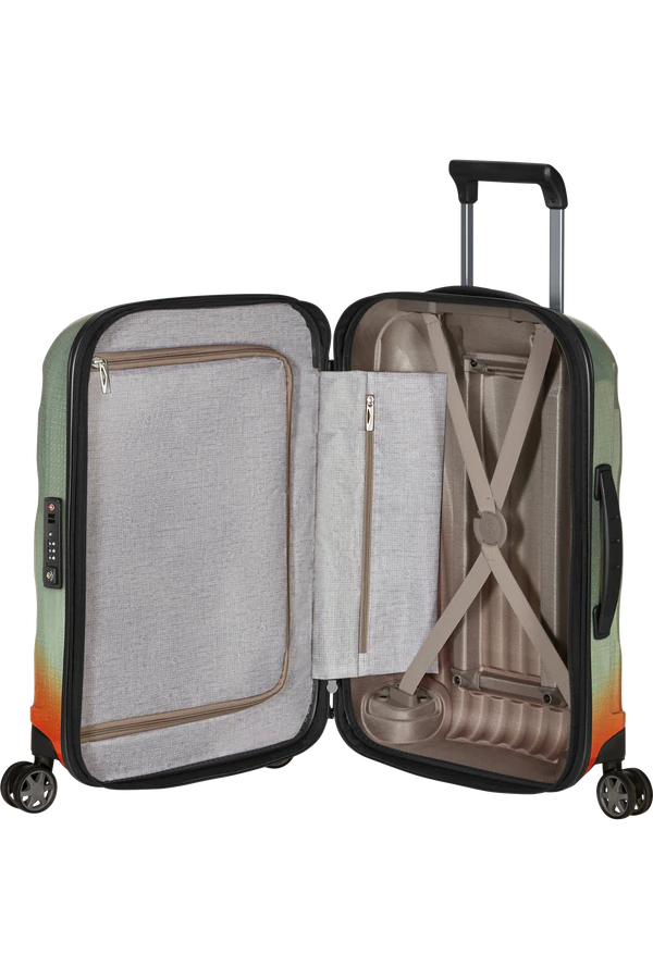 A Mala de Cabine Expansível C-Lite - 𝑬𝒅𝒊𝒄̧𝒂̃𝒐 𝑳𝒊𝒎𝒊𝒕𝒂𝒅𝒂 - da Samsonite surge com um design moderno e com fantásticos recursos que tornam a suas viagens mais confortáveis. Produzida na Europa em Curv - malha de polipropileno que lhe confere alta resistência e leveza. As 4 rodas duplas garantem ainda mais facilidade de transporte em todo o tipo de pisos. O interior é equipado com forro feito em Reciclex™ - Tecido 100% produzido a partir de garrafas de plástico reciclado PET.Detalhes & Características