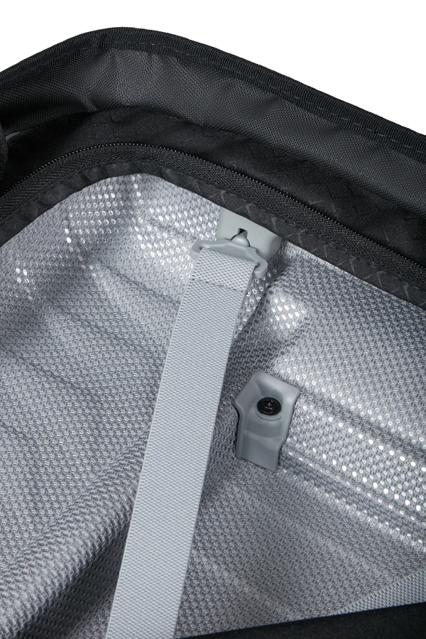 - Fecho expansível discreto e bloqueável para quando necessitar de espaço extra na mala.