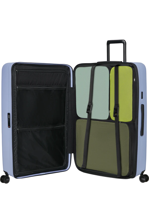 Viage com mais estilo e organização com a Mala de Viagem Extragrande 81cm Restackd da Samsonite. Desfrute de viagens mais tranquilas com as rodas com suspensão que absorvem os choques e fazem menos ruído. Manter a sua mala de viagem limpa e higienizada é agora mais simples através do forro interior removível e lavável. As bolsas de arrumação incluídas garantem mais e melhor organização do vestuário. A capacidade de expansão permite-lhe ainda estar preparada para qualquer situação e trazer umas lembranças extra. Sonhe e explore com a Restackd.