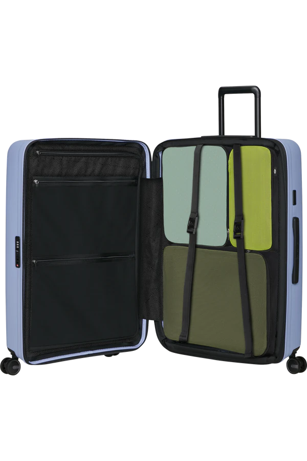 Viage com mais estilo e organização com a Mala de Viagem Grande 75cm Restackd da Samsonite. Desfrute de viagens mais tranquilas com as rodas com suspensão que absorvem os choques e fazem menos ruído. Manter a sua mala de viagem limpa e higienizada é agora mais simples através do forro interior removível e lavável. As bolsas de arrumação incluídas garantem mais e melhor organização do vestuário. A capacidade de expansão permite-lhe ainda estar preparada para qualquer situação e trazer umas lembranças extra. Sonhe e explore com a Restackd.