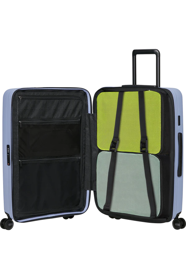 Viage com mais estilo e organização com a Mala de Viagem Média 68cm Restackd da Samsonite. Desfrute de viagens mais tranquilas com as rodas com suspensão que absorvem os choques e fazem menos ruído. Manter a sua mala de viagem limpa e higienizada é agora mais simples através do forro interior removível e lavável. As bolsas de arrumação incluídas garantem mais e melhor organização do vestuário. A capacidade de expansão permite-lhe ainda estar preparada para qualquer situação e trazer umas lembranças extra. Sonhe e explore com a Restackd.