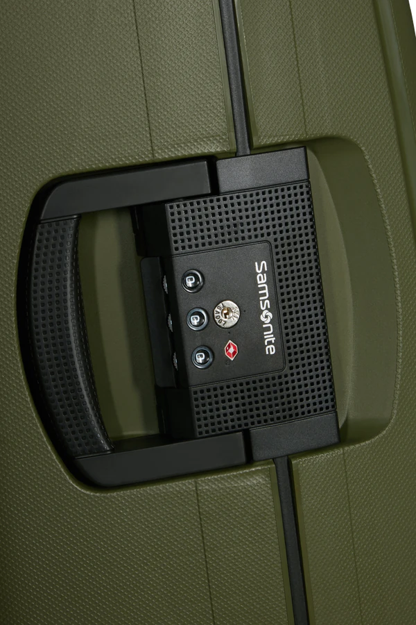 - Fecho de combinação de 3 dígitos com TSA. Graças a uma chave que a Autoridade de Segurança de Transportes (TSA) possui, permite às autoridades controlar a bagagem sem danificá-la.