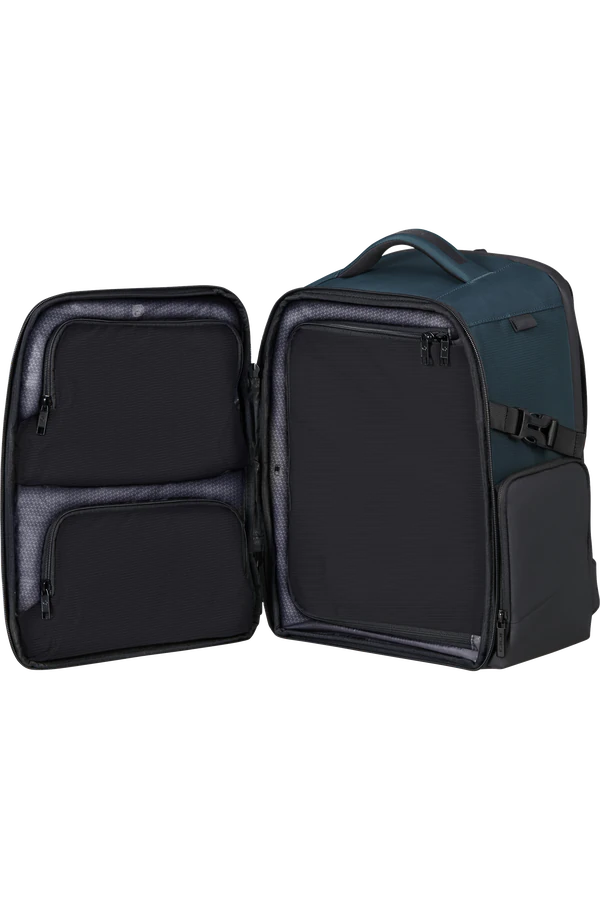 Esta mochila foi concebida para oferecer o máximo espaço de arrumação, cumprindo ao mesmo tempo as restrições de tamanho da bagagem de cabine.