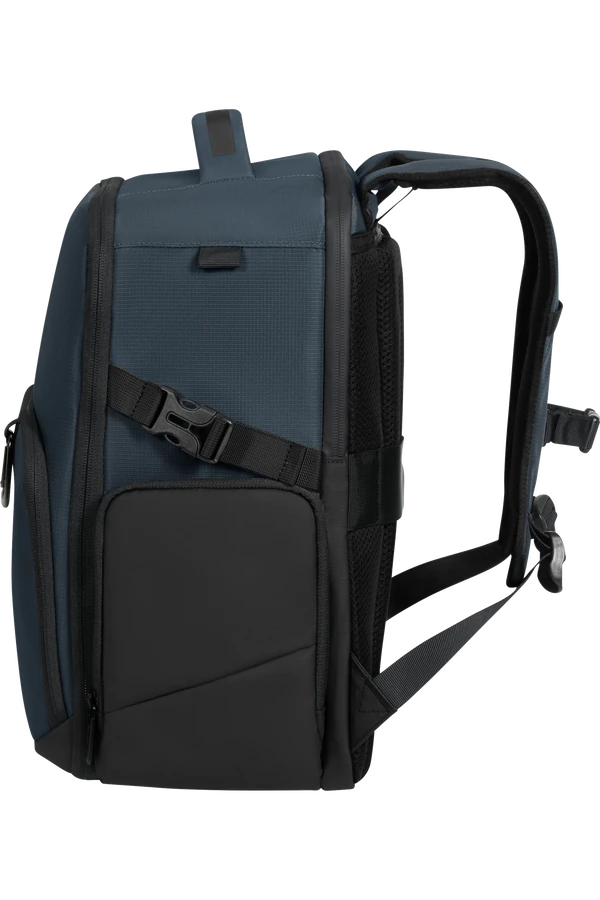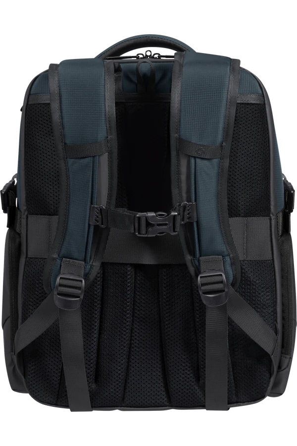 Alças ergonómicas com absorção de impacto, fita de esterno removível e painel traseiro com circulação de ar para maior conforto.