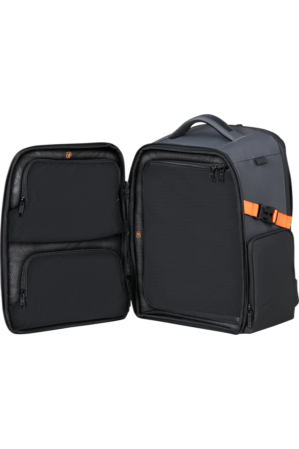 Esta mochila foi concebida para oferecer o máximo espaço de arrumação, cumprindo ao mesmo tempo as restrições de tamanho da bagagem de cabine.
