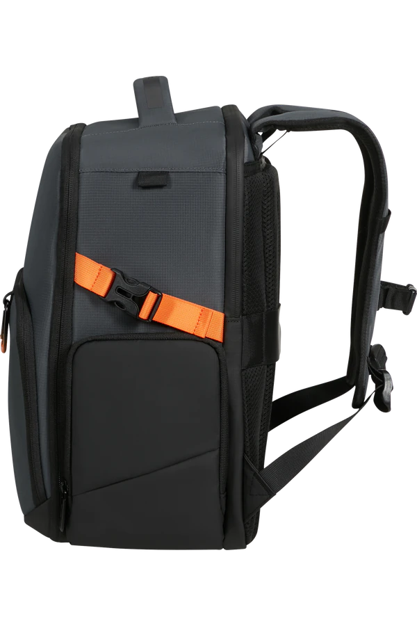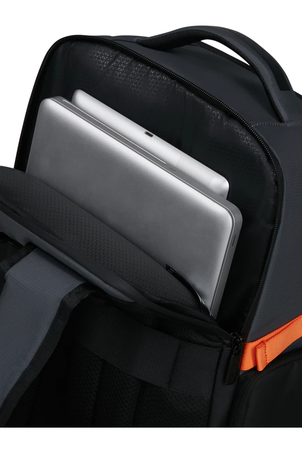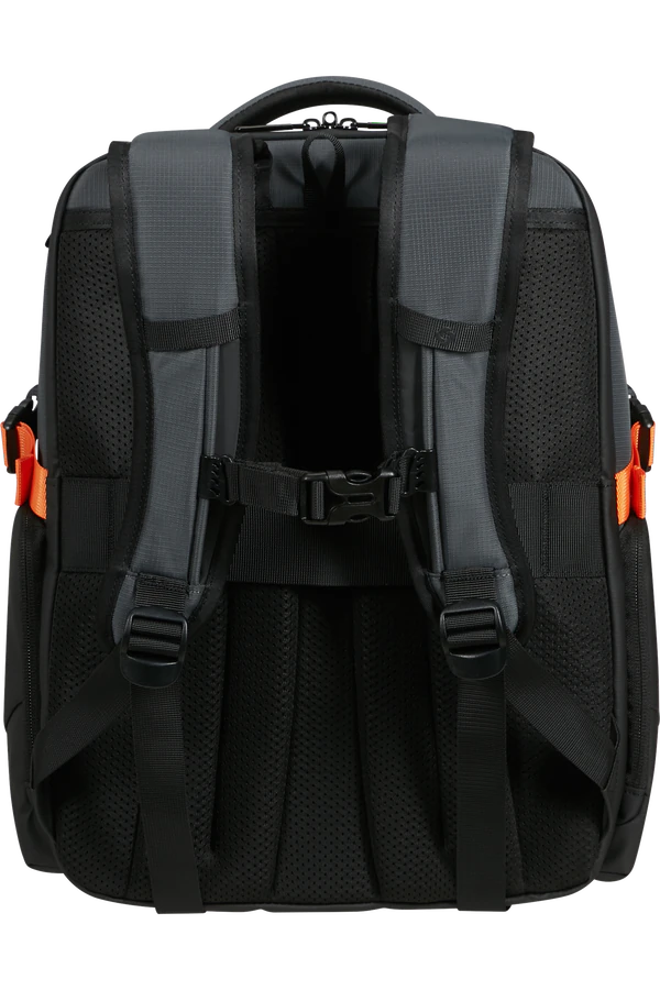 Alças ergonómicas com absorção de impacto, fita de esterno removível e painel traseiro com circulação de ar para maior conforto.