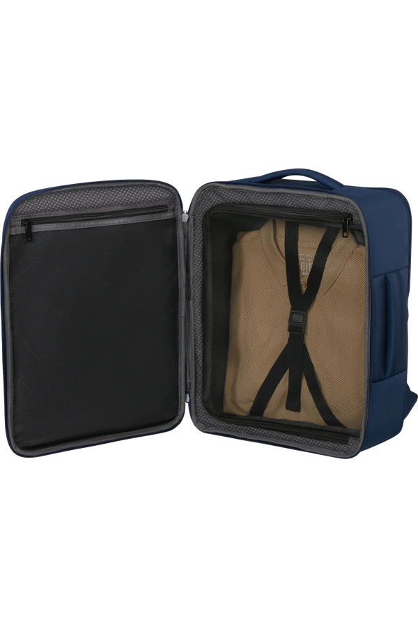 Oferece o máximo aproveitamento de espaço dentro dos limites de cabine, com fitas de fixação, compartimento para portátil e bolsos práticos — ideal para escapadinhas curtas.