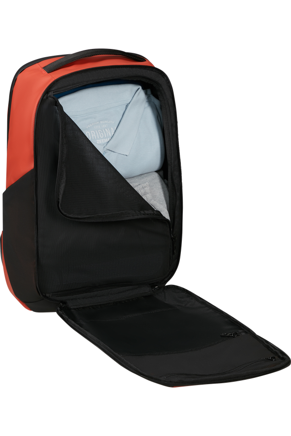 Esta mochila também é perfeita para escapadelas de fim de semana e viagens de negócios curtas. Use o compartimento para roupas para a sua estadia de uma noite.