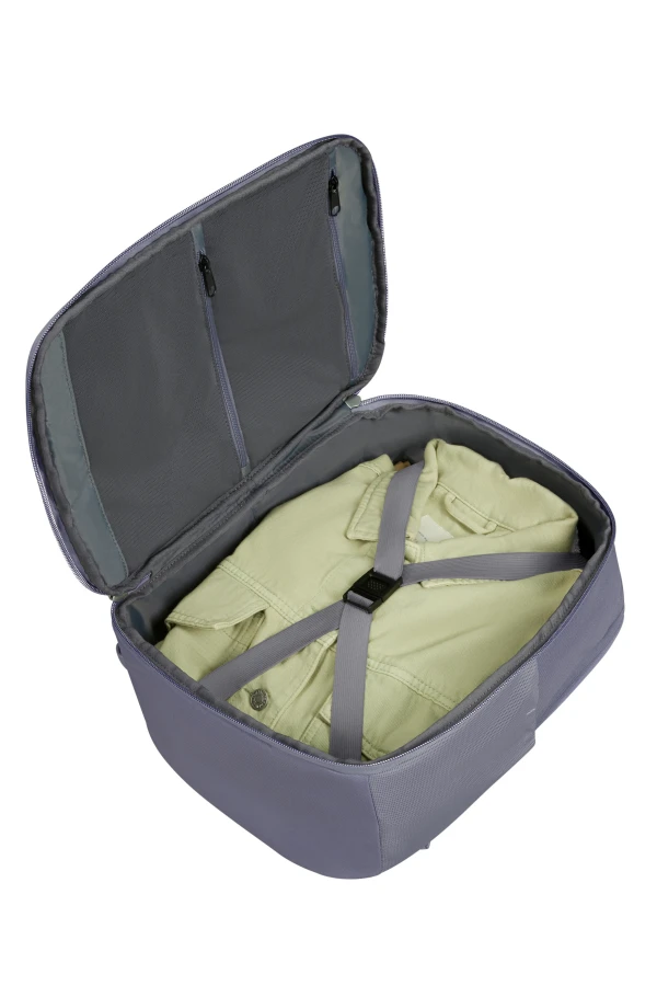 - Amplo, com cintas ajustáveis para melhor organização do vestuário e bolso em rede, See-Thru™.