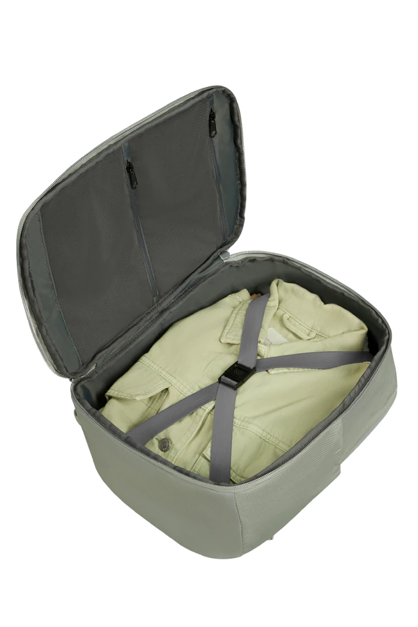 - Amplo, com cintas ajustáveis para melhor organização do vestuário e bolso em rede, See-Thru™.