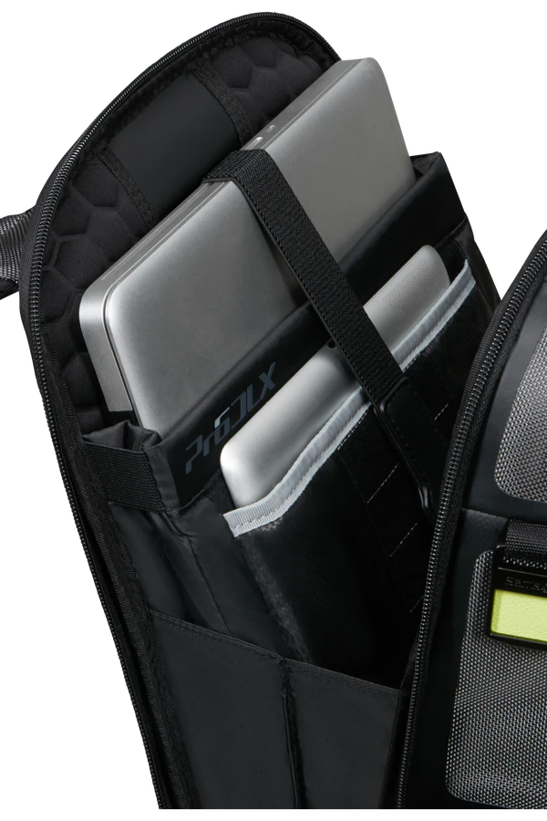 Explore a Mochila para Portátil 14.1" Pro-DLX 6 da Samsonite. Design contemporâneo, com opções de organização de alto nível e detalhes em pele de alta qualidade. Com compartimento dedicado para transportar o seu portátil e tablet em segurança. Bolso frontal com proteção RFID. Com porta USB integrada tipo A e C. Produzida em nylon balístico e interior em Reciclex™ - tecido obtido a partir de garrafas de plástico recicladas é resistente à água. Pro-DLX 6, é elegância e alta qualidade.